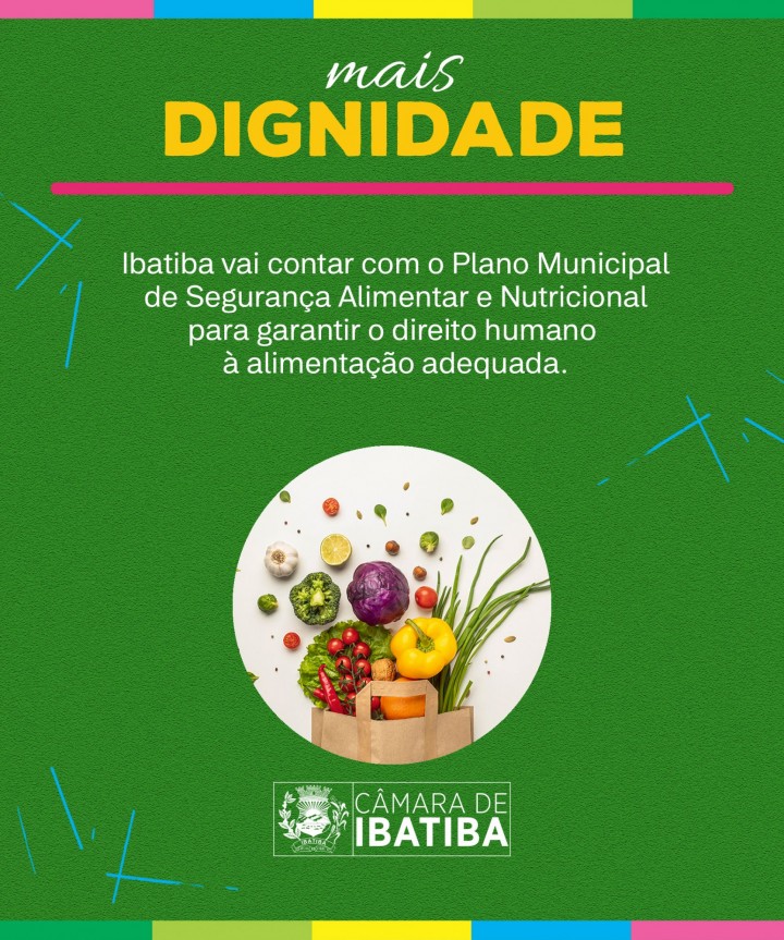 A Câmara Municipal de Ibatiba aprovou o projeto que cria os componentes municipais do Sistema Nacional de Segurança Alimentar e Nutricional (SISAN), bem como define parâmetros para elaboração e implementação do Plano Municipal de Segurança Alimentar e Nutricional, com o propósito de garantir o direito humano à alimentação adequada.