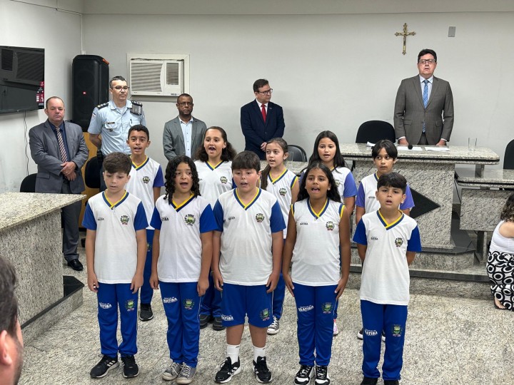 Durante o evento, alunos da Escola Eunice Pereira Silveira entoaram poemas e cantaram o Hino Municipal de Ibatiba acompanhando pelo músico Marcos Vinicius Cruzeiro da Silva.