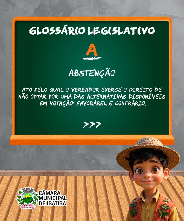 Para descomplicar os termos técnicos, a Câmara Municipal de Ibatiba criou o mascote Tropê, que vai te ajudar a entender algumas expressões. Confira a lista que separamos de A à C.