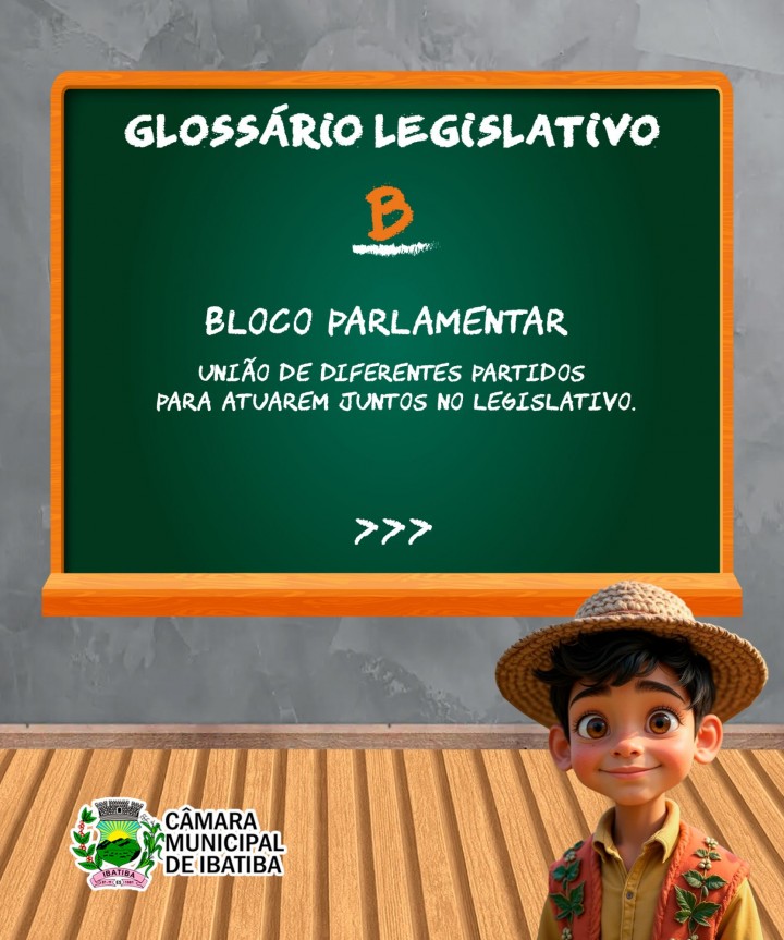 Bloco Parlamentar: União de diferentes partidos para atuarem juntos no Legislativo.
