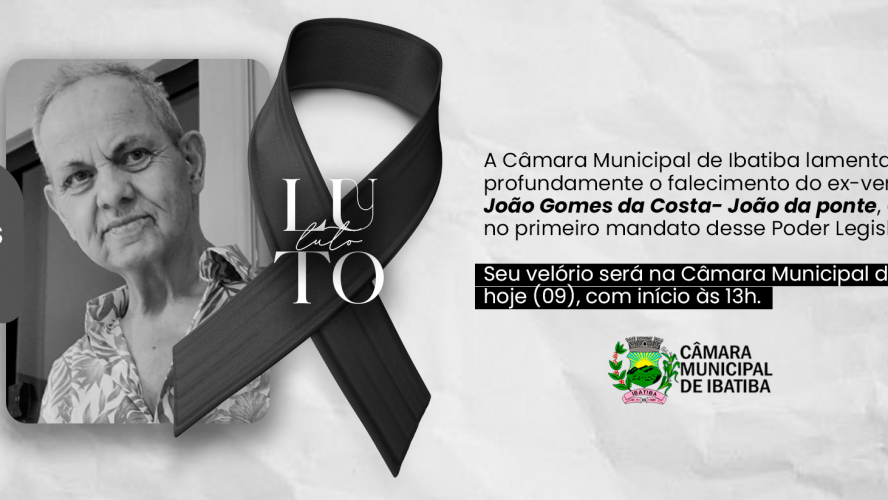Noticia Nota de Pesar: João Gomes da Costa O velório terá início hoje (09), às 13h na Câmara Municipal de Ibatiba e o sepultamento amanhã (10), às 13h. há 9 meses • Notícia