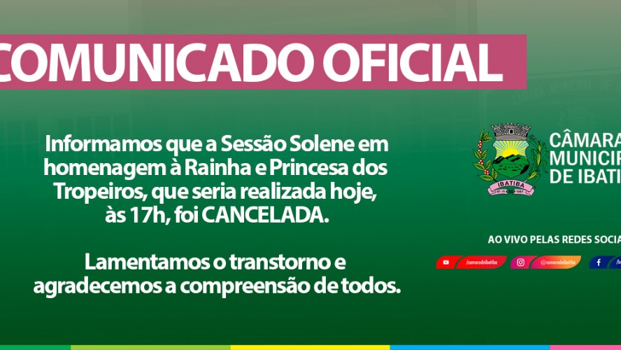 Noticia Câmara Municipal cancela Sessão Solene em homenagem à Rainha e Princesa dos Tropeiros há 4 meses • Notícia
